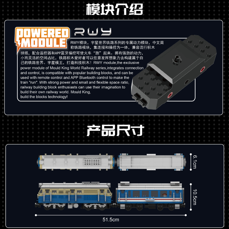 Ortwin This was a very fun and easy build. Fantastic brick quality as always with Mould King. Very good instructions and a beautiful model. The RWY-module is amazing and it comes with a very well working remote control with great support of all speeds from very slow to fast. Only downside is the limited battery capacity due to the small size of the module, it lasts about 5 minutes. And I was a bit disappointed that there are no motor details built in the enigine, it is simply empty on the inside. Fantastic for the price, though.