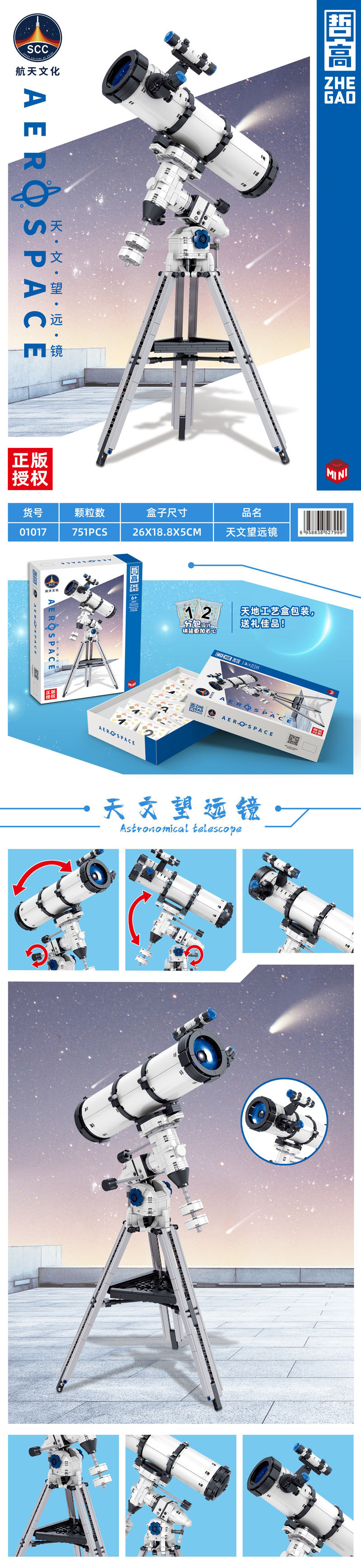 751pcs ZHEGAO 01050 Astronomical Telescope (MINI Bricks)
